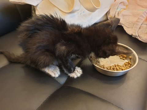 어제는 분유만 먹였는데 오늘 새벽엔 참치랑 사료물불려줬더니 싹비웠다는..