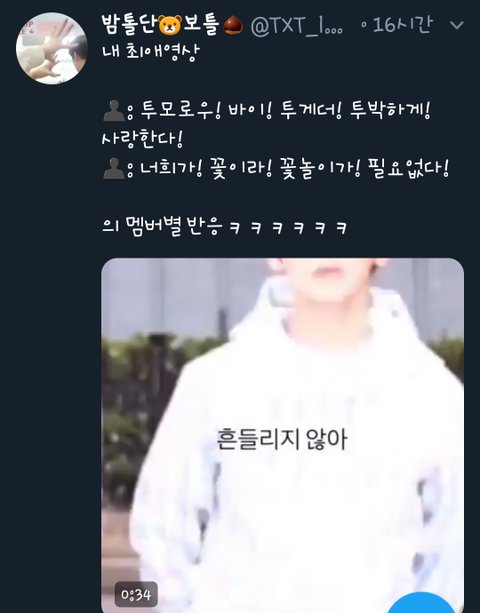 : 투모로우! 바이! 투게더! 투박하게! 사랑한다!