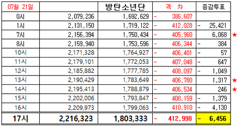 41화 7/21 일요일 인기상 격차 그래프 정산