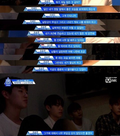 4. 1차 순발식에서 높은 순위를 받았던 연습생이 순위가 많이 떨어지자 다들 놀라서 벙찌고 얼어서 아무것도 못함 그랬더니 연습생들한테 좀 안아주라고 함