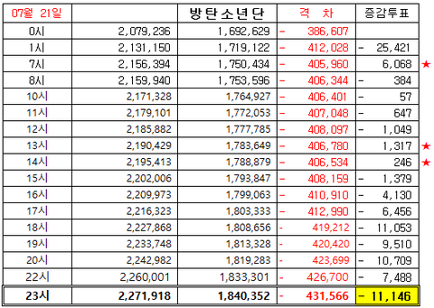 41화 7/21 일요일 인기상 격차 그래프 정산