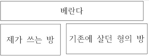 "응 베란다쪽으로 담배피는거다 집안에서 담배를 필수는 없자나 불편하면 도와줄테니 현관문쪽으로 방 옴겨라"