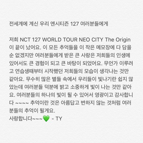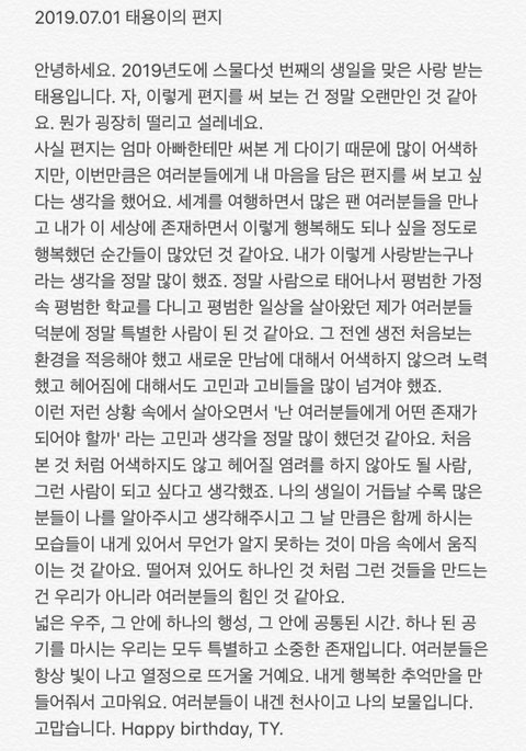 태용이는 팬들에게 편지도 자주써줘