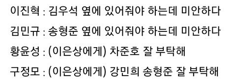 이진혁없는 김우석 황윤성없는 차준호 김민규없는 송형준 구정모없는 강민희 금동현없는 이은상