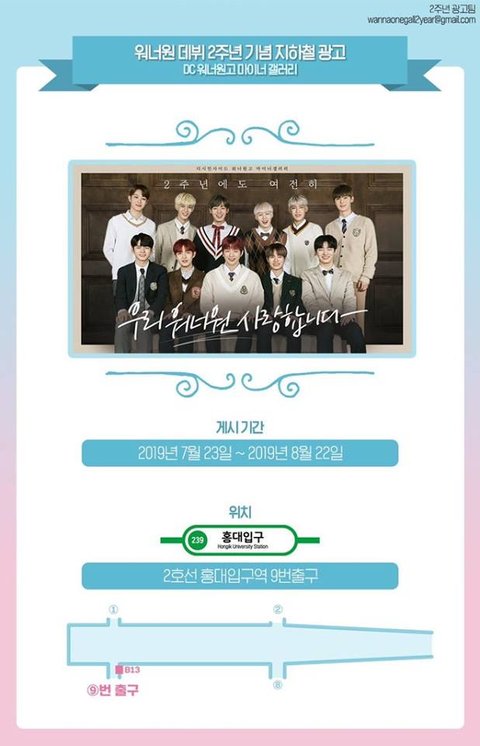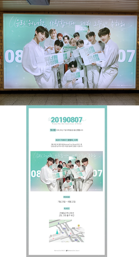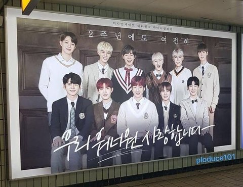 홍대입구에 걸린 워너원 데뷔 2주년 광고
