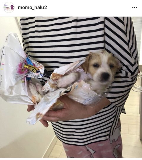 1. 최초 발견자분이 배변 봉투 안에 많은 양의 따뜻한 물과 함께 여기저기 구타흔적이 있는 강아지를 발견하시고 하룻밤 집에서 재움. (이 때는 아가가 겁먹어서 오줌을 많이 쌌다고 생각)