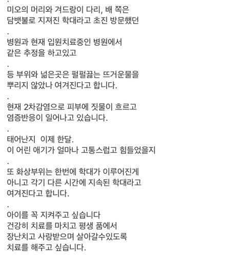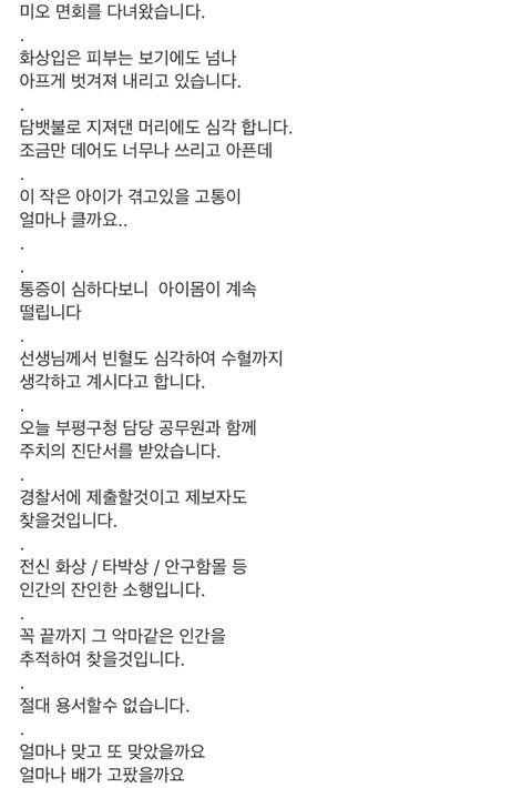 4. 큰 병원으로 옮김. 아가와 있던 물이 오줌이 아니라 끓는 물이였고 이로 인해 전신화상을 입었다는걸 알게됨.