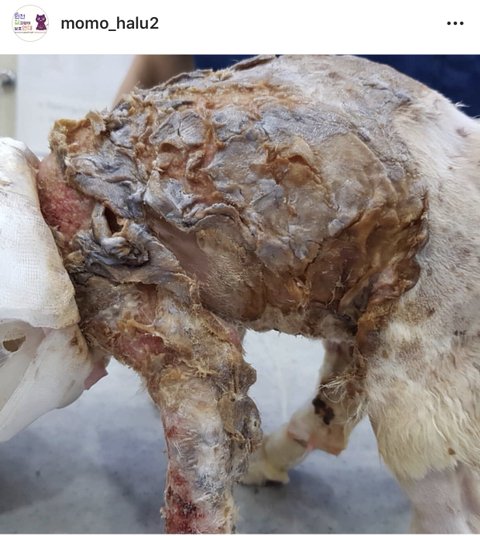 3. 털에 가려진 전신 피부에 화상 열기가 올라오기 시작하면서 심각하게 피부 손상 오기 시작.