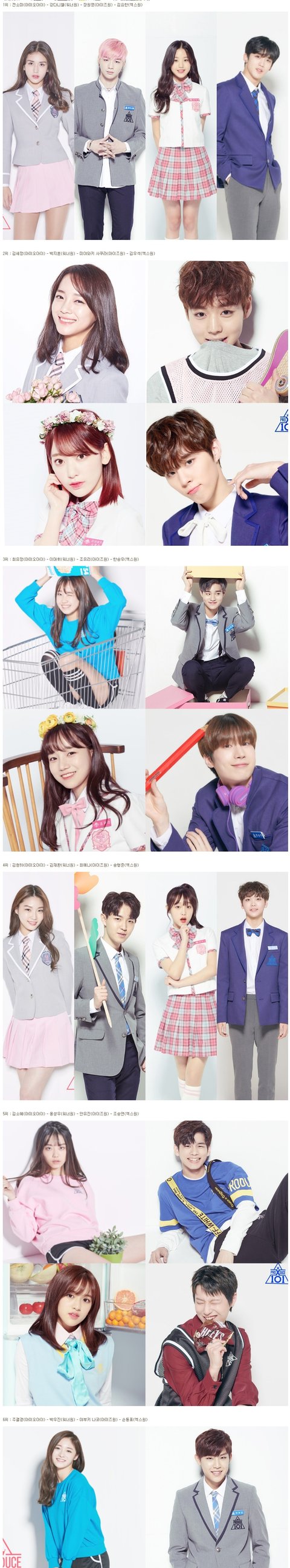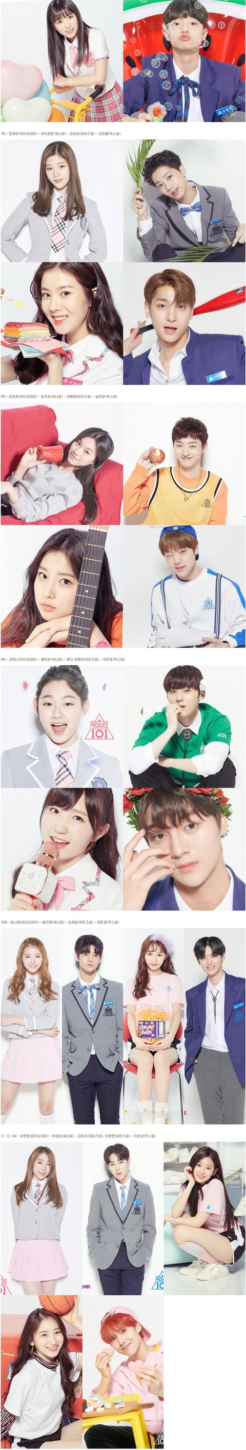 11, 12, X위 : 유연정(아이오아이) - 하성운(워너원) - 김민주(아이즈원), 이채연(아이즈원) - 이은상(엑스원)
