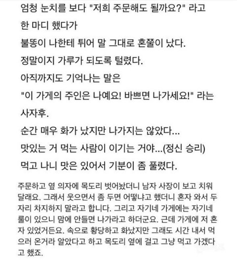 아직도 저 가게가서 주인장한테 욕쳐먹고 눈치봐가며 음식 사먹는 호구 ㅂㅅ은 없겠죠?없어야함