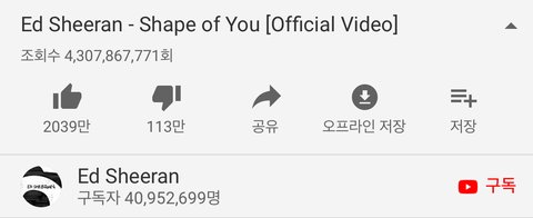 백현을 조회수 43억 에드시런이랑 비교하냐
