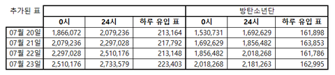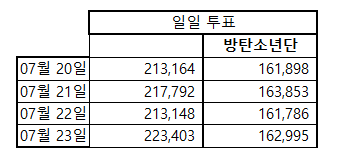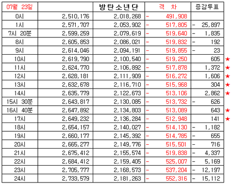 7/23 화요일 인기상 격차 그래프 정산