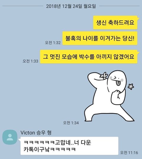 95년생으로 허찬이랑 동갑이야 빅톤이 여동생한테 소개시켜 줄 수 있는 멤버로 뽑을 만큼 착해ㅜ가수가 너무 하고 싶은데 부모님께 손 벌리기가 싫어서 보컬 학원 청소도 했다고...다들 승우가 메보인줄 알지만 사실 이 멤버가 메보. 연습생도 아니었을 때 허각 노래의 가이드를 할 정도로 노래실력이 출중. 그냥 출중이 아니라 진짜 잘 불러 근데 키까지 크다? 180