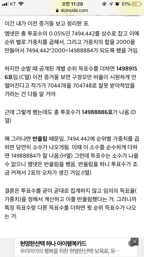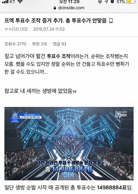 이번 프듀 총 득표수도 안맞음