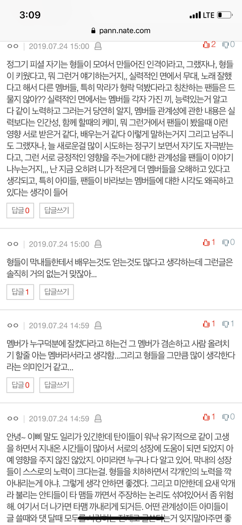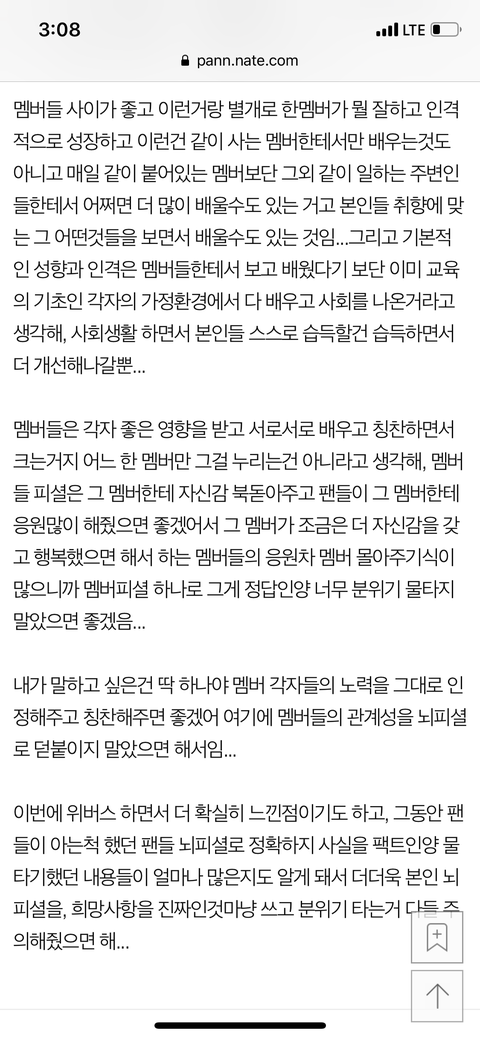 멤버들 관계성에 관한 일부 팬들의 사실과는 다른 글들