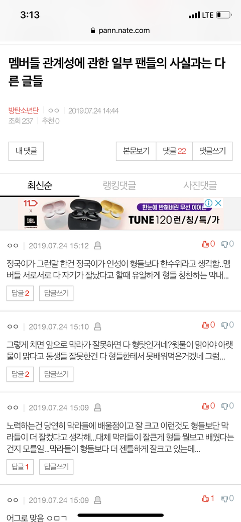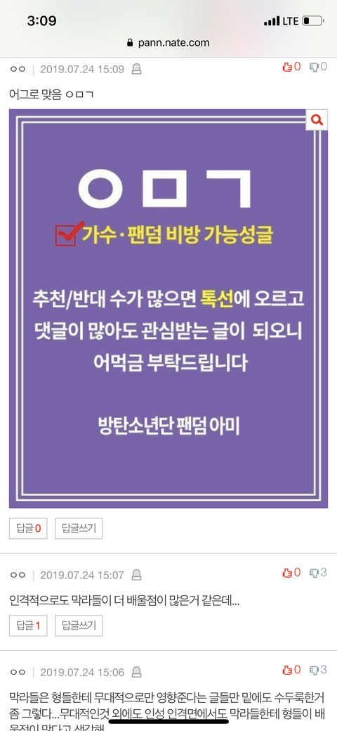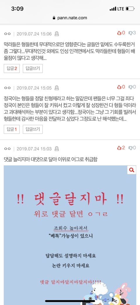 밑밑글 어그로맞음 댓 도배중임