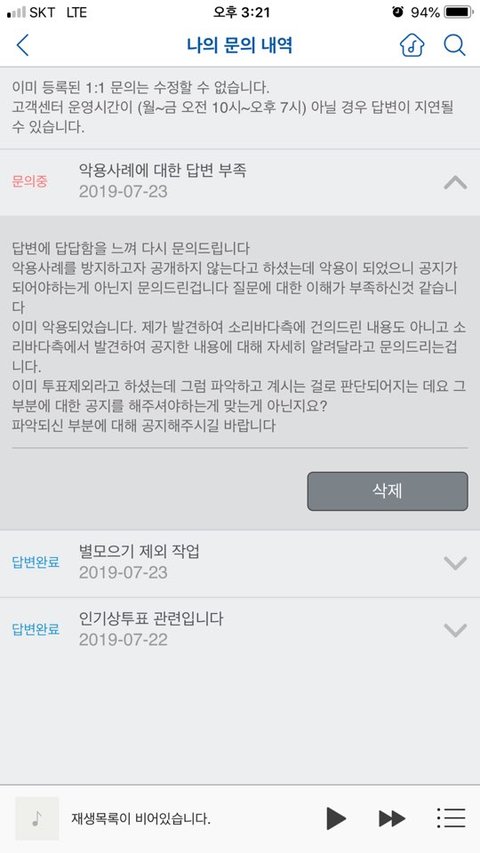 내가 23일 18:00에 문의했는데 아직까지 답변이 없는데 우찌해야해