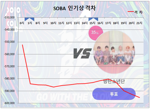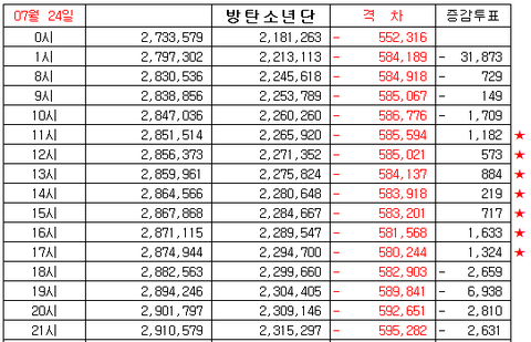 7/24 수요일 9:00 PM 인기상 격차 그래프