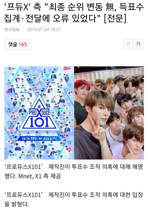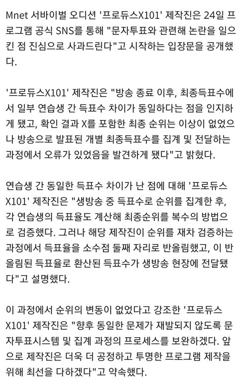 프듀 제작진 공식입장 떴네ㅋㅋㅋ
