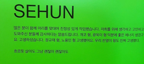 세훈이 이번 앨범 땡스투 마지막에 디오 솔로곡 가사도 적어놨다함..