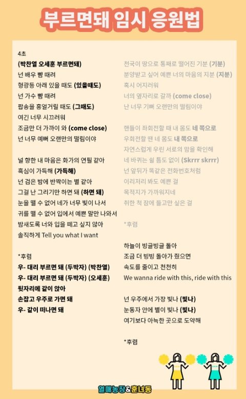 부르면돼 앞부분 응원법 박자가 어케 되는거지