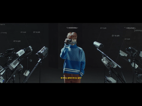 이름 보여? 순간적으로 꿈에서 멤버들 이름으로 바뀌는 장면이야 이 외에도 멤버들의 꿈을 기록한 듯 보이는 테이프 등이 나오는 걸 보아 꿈은 해찬이가 기록하는거 같은데 해찬이의 꿈도 기록물이 남아있어서... 모든 멤버들은 꿈을 남기는 것 같아.