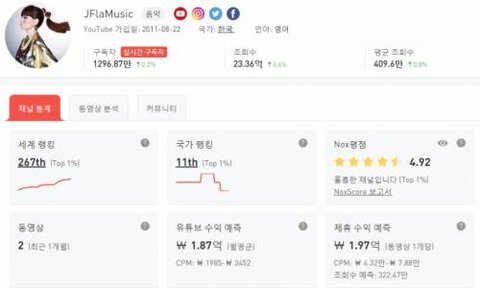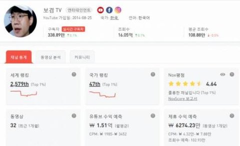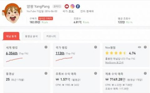 참고로 생성한지 한달정도된 백종원 유튜브 월 8천만원 예상수익