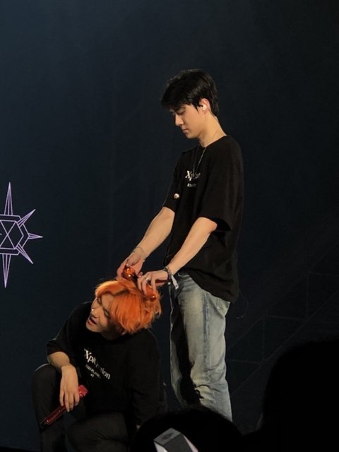 백현이 머리에 마이크 숨기는 세훈이