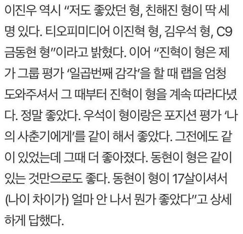 이진우가 프듀에서 친하다고 언급한 세명