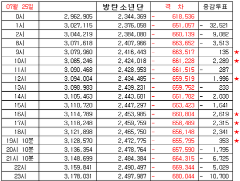 17화 7/25 목요일 인기상 격차 그래프 정산
