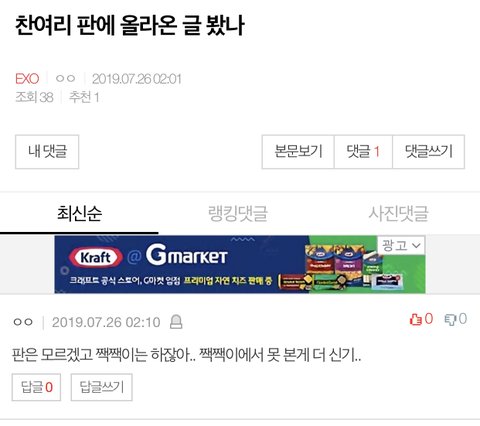 ⬇️찬여리 판에 올라온글 봤나 글이랑 댓글 여기서보셈⬇️