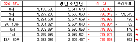 17화 7/25 목요일 인기상 격차 그래프 정산