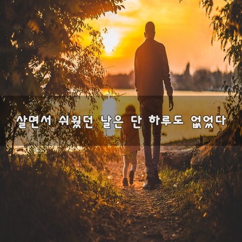 아무것도 모르던 어린 날이 좋았지 어려움이 있다 해도 충분히 넘을 수 있었던 일들 간혹 그 작은 어려움에 걸려서 넘어지는 날에도 늘 내 곁을 지켜주시던 부모님이 다가와 내 손을 잡아 일으켜 주셨지 어느덧 어른이 되니 모든 어려움들을 혼자의 힘으로 넘어야 했지 넘고 넘고 또 넘어도 끝이 없는 인생이 장애물들 살면서 단 하루도 쉬웠던 날은 없었지 하지만 난 포기하지 않아. 어떤 어려움도 견뎌내며 앞으로 계속 전진할 거니까. - 박광수, '살면서 쉬웠던 날은 단 하루도 없었다' 중 -