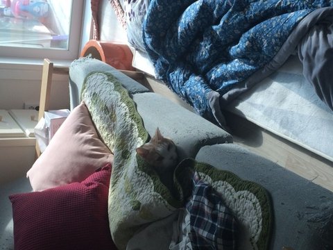 침대에 혼자 자고 있다 급 일어나서 누나 있는 곳으로 갔다옹.