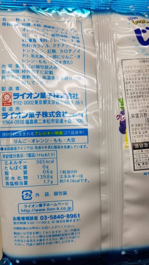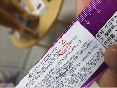 한국 판매중인 후쿠시마산과 근처 과자,캔디,젤리. 4개