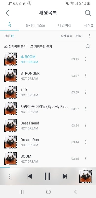 전곡 총 6곡 두 번 담아서 반복재생 했어! 아직 권장 리스트 안나왔으니까 이거 맞지?