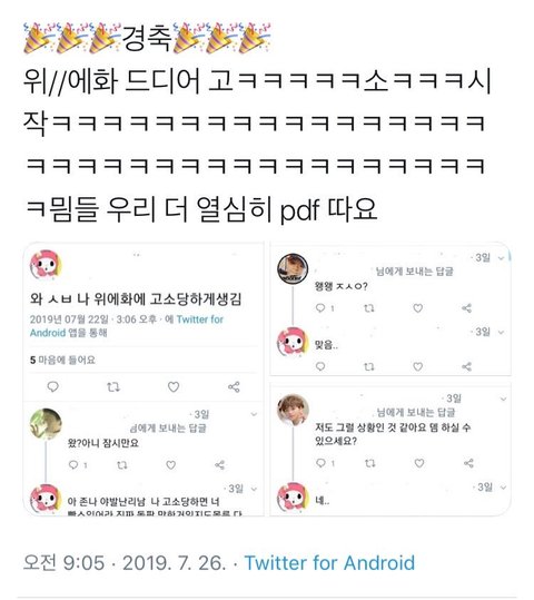 담당자께서 확인 다 하고잇고 고소진행중이라고 들엇다고 위에화직원한테들음 ㅇㅇ 녹음본도잇어 신나서 메일 더 보내고올게
