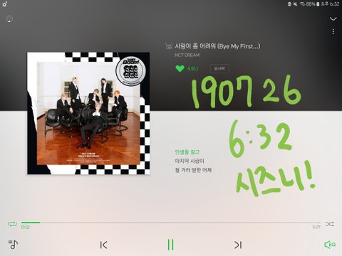 오늘은 음원 발매 첫날이니까 스밍화면 캡쳐도 받을게!