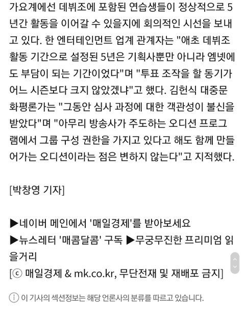 대기업의 횡포에 힘없는 연습생들이 피해를 입고있습니다.