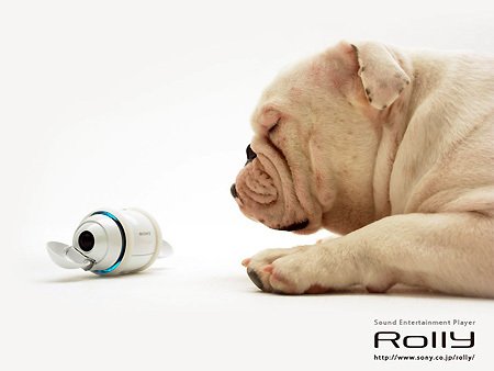 소니에서 새롭게 선보이는 춤추는 mp3 rolly, 우리나라 실폐 장난감 닮아.... 음악에 맞추어 스스로 신나게 춤을 추는 rolly는 music player와 robot을 합쳐 놓은 기술과 오락성을 가미하고 있다. 모니터가 없고 곡선을 택해 이동성을 용이하게 하였다. 양끝에 있는 부분이 스피커이고 귀같은 부분이 음악에 맞추어 춤을 추고 우리나라 실패 장난감 과 같이 다양하게 이동 할 수 있다.
