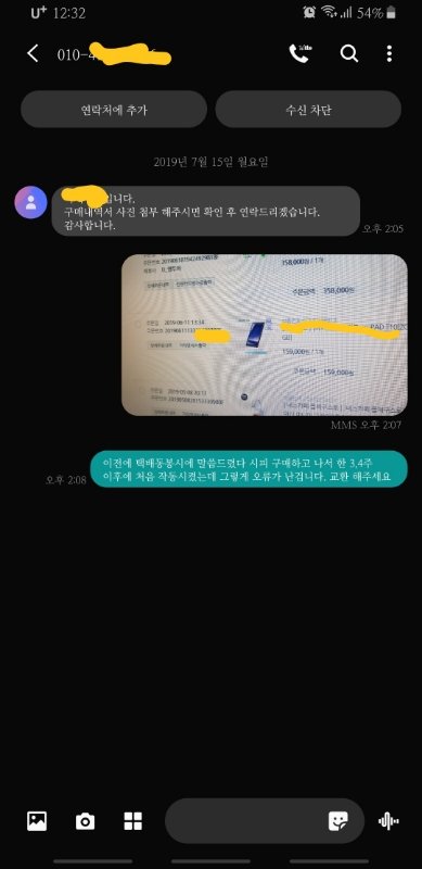 7월15일 (월) 에 전화가 와서 사정은 알겠으나, 거래명세서 말고 어디서 샀고, 언제샀는지를 알려달라고 하시길래 구매내역 컴퓨터 화면을 찍어서 문자로 보내드렸습니다.