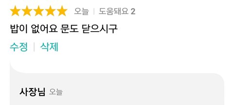 그리고 나중에 위 사진과 같은 리뷰 남겼어요 지나간 일 밥 달랄 의도 아니었고 별 고민 없이 그냥 남긴건데 제가 잘못했나요?사장님이 제 연락처로 문자메세지 보내셨는데, 고객정보를 소지하고 계신다는 뜻이고