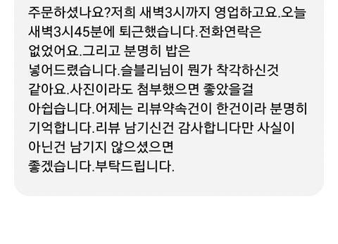 다만 밥 없는거 확실한데 안준것도 줬다고 일축해서 업소 실수 부정하고 곡해하는거 아닌가 말이에요