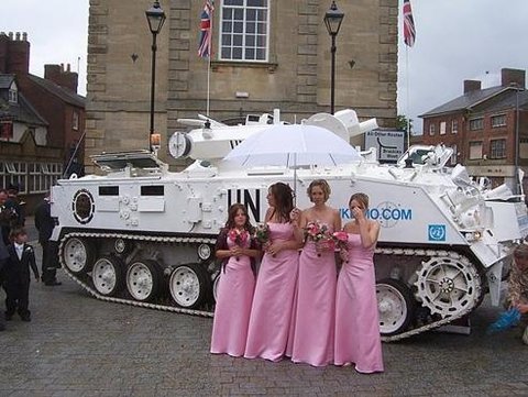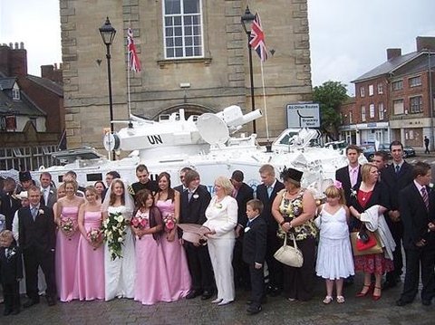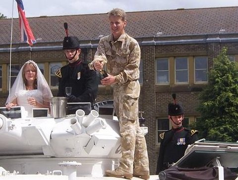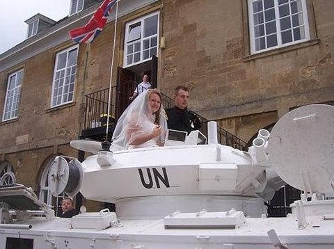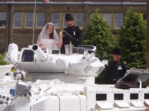 탱크 타고 결혼식장으로~