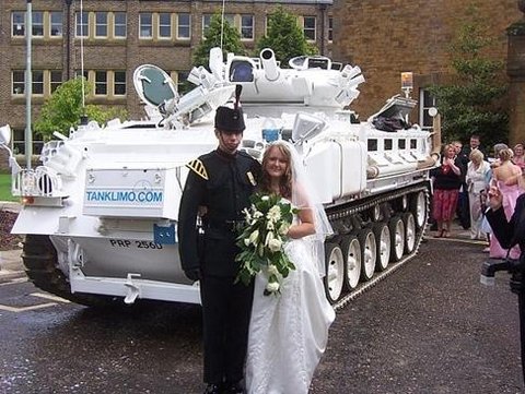 영국 회사 tanks-a-lot의 탱크 리모(tank limo). 밀리터리 매니아의 결혼식이나 특별하고 기억에 남는 결혼식을 원하는 이들에게 리무진으로 개조한 탱크를 대여하고 있다. 3명의 승무원과 최대 8명의 탑승객이 탈 수 있고 내부에는 냉장고, 히터, dvd가 갖춰져 있다. 대여료는 1600파운드-4000 파운드. 신부를 태우고 원하는 장소까지 데려다 주는 것을 기본으로 거리에 따라 할증요금이 추가된다.