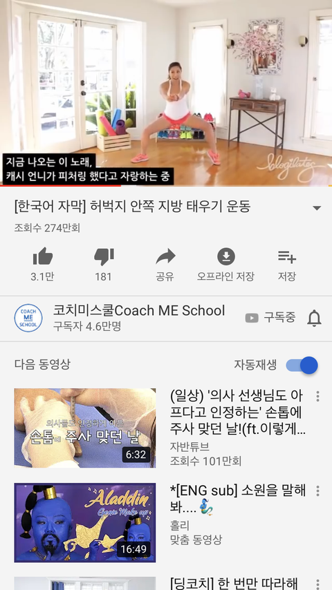 암튼 그 글에서 추천한 홈트가 이 캐시 안벅지인데 반신반의로 따라해봤지