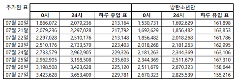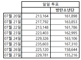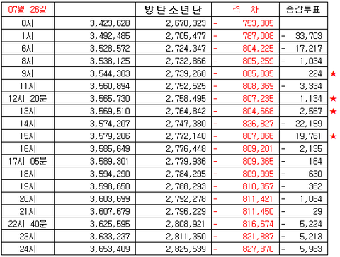 12화 7/27 토요일 인기상 격차 그래프 정산
