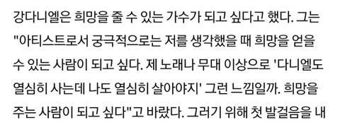 앞으로의 포부를 물었을때도 뭘 달성하겠다는 얘기보단 희망을 주고싶다고 얘기함