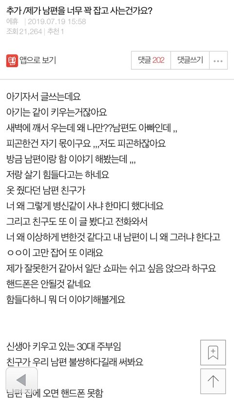 제가 남편을 너무 꽉 잡고 사는 건가요?