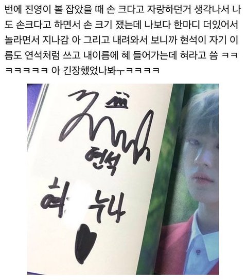 그리고 어떤 누나팬한테 '누나'라고 적어야 되는데 '누난' 이렇게 적었다곸ㅋㅋ